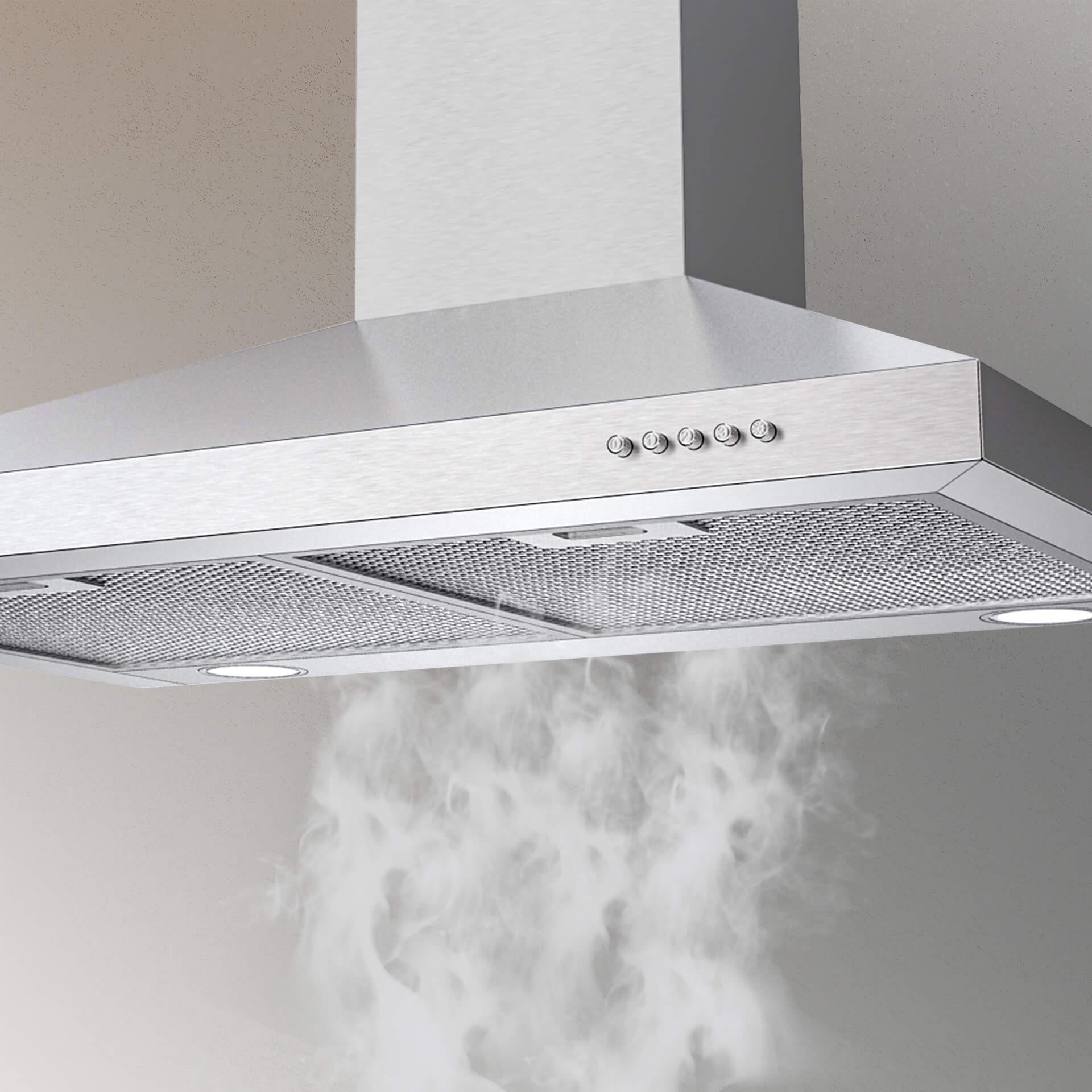 Space Saving: Top-wall vented range hood can save your kitchen space. There is no problem purchasing the same size as your stove because you have the wall which will guide up any steam coming up and make the most of your kitchen space.